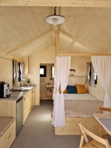 Fuera de las vacaciones escolares, las casas móviles están disponibles para alquileres de corta estancia, a partir de 2 noches.